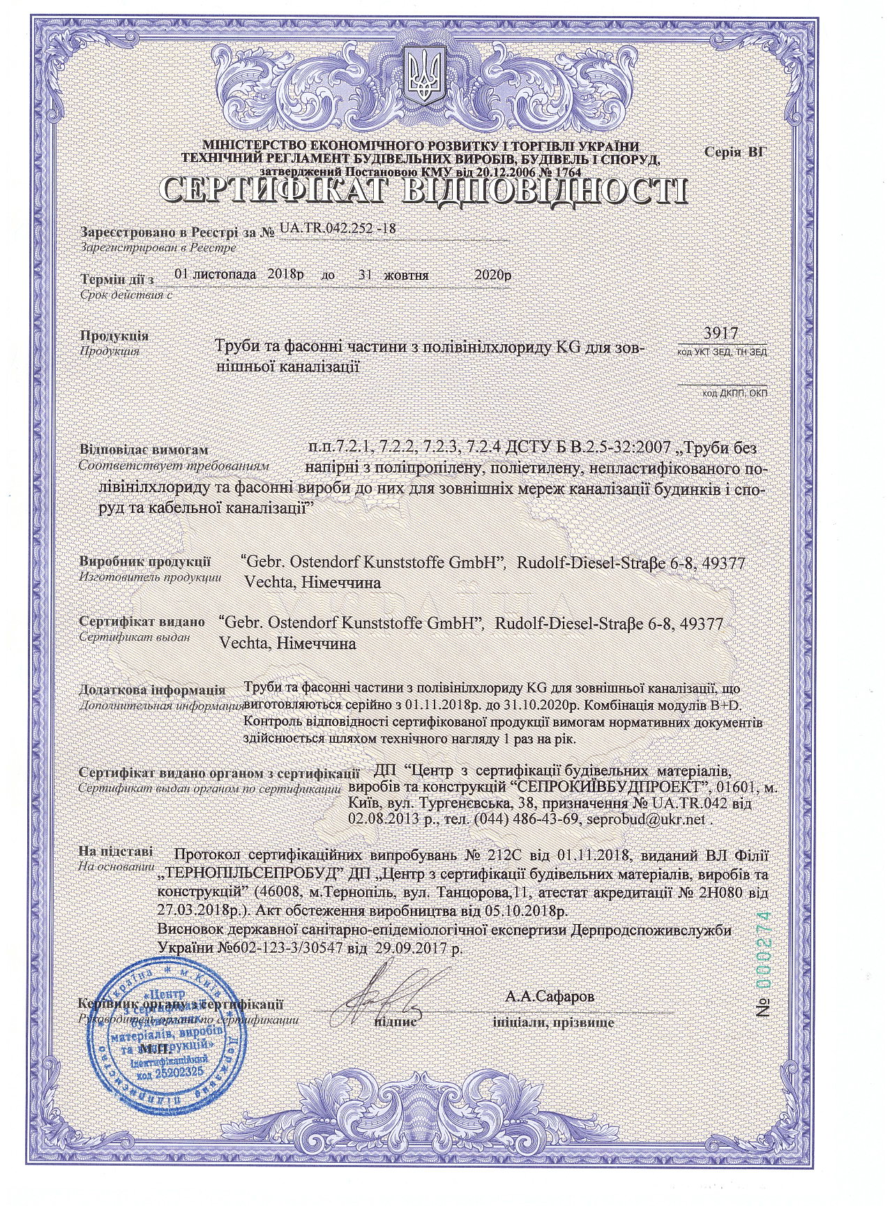 В основу производства системы OSTENDORF KG (PVC–U) положена запатентованная уникальная технология коэкструзии. Она позволяет получить трубу, структура стенки которой аналогична строению кости у представителей животного мира. В результате трубы и фитинги ТМ OSTENDORF обладают высочайшей прочностью, а значит долговечностью. Также среди плюсов данной канализации можно выделить ее нетоксичность, стойкость к воздействию химических веществ, УФ-излучений, устойчивость к перепаду температур. Среди превосходств следует отметить герметичность, пожаробезопасность и высокие гидравлические свойства.
