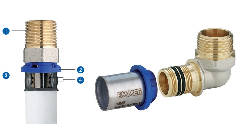 І ось у нас в магазині Сантехдар Ви можете вибрати і купити прес-фітинг торгової марки Emmeti для багатошарових труб PeX/Al/PeX і PE-RT/AL/PE-RT .Прес-фітинги пропонуються в різних типорозмірах, сертифіковані за різними міжнародними стандартами і виробляються з дотриманням найсуворіших норм якості. Всі латунні фітинги забезпечені подвійною конфігурацією o-кілець для забезпечення найкращого з'єднання в будь-яких умовах. Прес-кільце виготовляється з нержавіючої сталі - найкращий варіант для тривалої експлуатації і безпечного з'єднання.